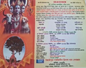 প্রেমময় অমৃত বিগ্রহ শ্রী শ্রী ত্রিনাথ ঠাকুর এর অশেষ কৃপা ও আপনার/ আপনাদের সার্বিক সহযোগিতায় আগামী ০৫ ও ০৬ বৈশাখ ১৪৩৩ বঙ্গাব্দ,১৯ ও ২০ এপ্রিল ২০২৬ খ্রিঃ, রোজ রবি ও সোমবার র্জ্যৈষ্ঠপুরা সর্ব্বজনীন ত্রিনাথ ধাম সেবাশ্রম এর উদ্যােগে ” অক্ষয় তৃতীয়া ” এর শুভ দিনে ৪র্থ তম ” বার্ষিক সাংস্কৃতিক অনুষ্ঠান ও বিশ্বশান্তি ব্রক্ষযজ্ঞ এর ” অনুষ্ঠানের আয়োজন করা হয়েছে।